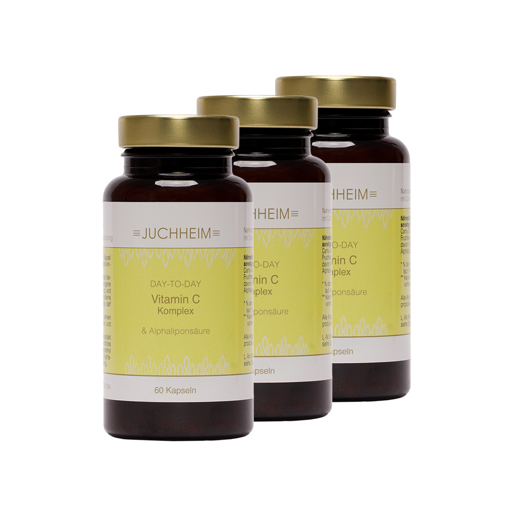 Our DAY-TO-DAY Vitamin C Complex Capsules with Alphalipoic Acid contain a natural vitamin C complex, rich in bioactive plant compounds, providing you with 156% of the full daily dose of Vitamin C.