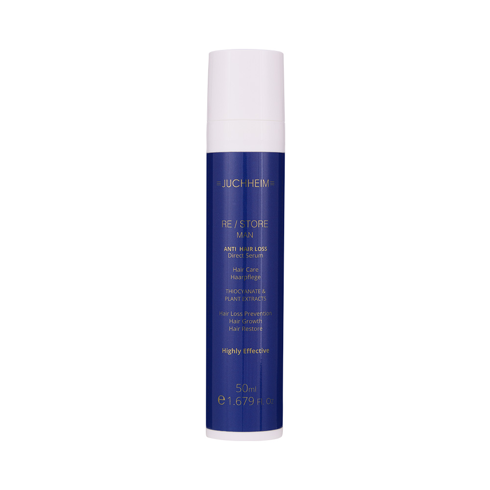 RE/STORE MAN direct serum provides the hair root with thiocyanate. This strengthens the hair root and builds protection against androgens.